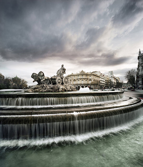 «Madrid, región inédita» es una exposición de fotografías de Fernado Manso (Madrid, 1961) que podemos visitar del 16 al 30 de noviembre en el patio de la Casa de Correos (la sede del Gobierno Regional en la Puerta del Sol). Manso nos ofrece una visión relajada y a la vez espectacular sobre la metrópolis y su entorno con imágenes inmersas en una atmósfera de equilibrio y silencio. La muestra se compone de una serie de 40 fotografías de gran formato ejecutadas con minuciosidad, destreza técnica y un manejo de la luz y de los tiempos de exposición que roza la perfección. Todas las fotos han sido captadas por medio de una cámara tradicional de placas de 10×12.