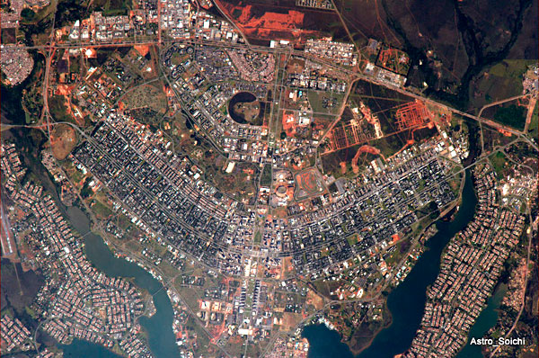 La ciudad de Brasilia, capital federal de la República brasileña, fue erigida desde cero a partir de 1956 como ciudad administrativa y residencial en la Región Centro-Oeste del país, formada por los estados de Mato Grosso, Mato Grosso do Sul y Goiás; así como el Distrito Federal, del que forma parte Brasilia. El aspecto actual de esta ciudad sigue siendo fiel a los planos de urbanistas y arquitectos de la talla de Óscar Niemeyer (Río de Janeiro, 1907). Brasilia, que cuenta con alrededor de 2,5 millones de habitantes, es la única ciudad construida en el siglo XX que ha sido declarada Patrimonio Cultural de la Humanidad por la Unesco (1987). [Véase en Ciudad futura «La arquitectura de Niemeyer: arte y tecnología en estado puro»]