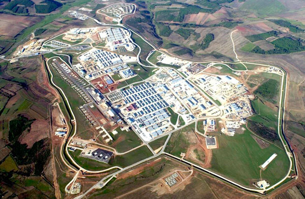 Foto aérea de las flamantes instalaciones militares de Camp Bondsteel en Kosovo. La macro-base de Camp Bondsteel, que alberga a 10.000 soldados, es la mayor y más cara instalación militar exterior del ejército de EEUU desde los tiempos de la Guerra de Vietnam. Kosovo, autoproclamado «independiente» gracias al apoyo de EEUU y a una intensa campaña de bombardeos sobre Yugoslavia en 1999 es, de hecho, un protectorado estadounidense en un lugar estratégico de Europa desde el que se puede actuar sobre Oriente Medio, el Caúcaso, Iraq, Irán o Rusia. [Véase al respecto en Ciudad futura: «Independencia con bombas» y «Kosovo no es Cataluña»]