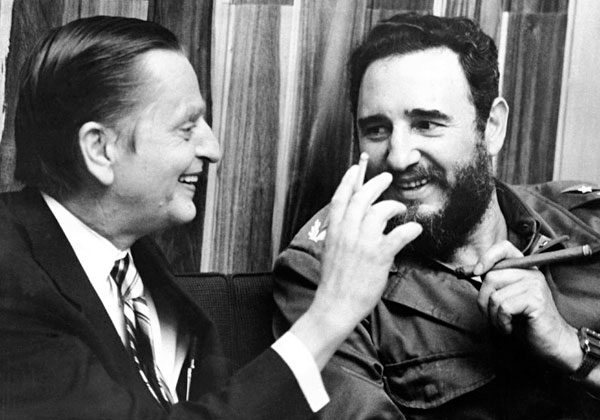 Fidel Castro y Olof Palme conversan en La Habana durante la visita oficial del primer ministro de Suecia a Cuba en 1975. Palme declaró abiertamente su simpatía por la Revolución cubana y consideraba a Fidel «un buen amigo». [Foto: DPA/Der Spiegel]