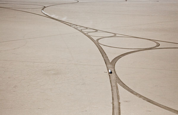 El arte del californiano Jim Denevan sorprende, en primera instancia, por el soporte y el formato: el lienzo es la propia tierra y sus dimensiones, por tanto, colosales. Pero además sus obras son resultado de una meticulosa planificación previa, maestría en la ejecución y —a la vista está— grandes (nunca mejor dicho) resultados estéticos.