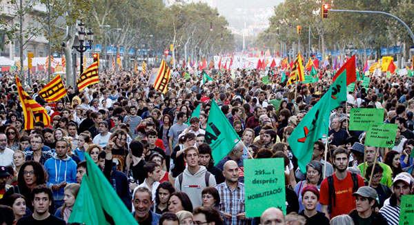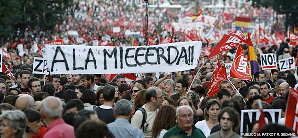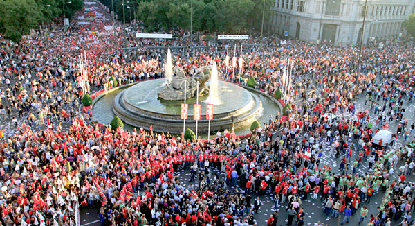 El colofón de la jornada del 29-S ha sido la celebración de masivas manifestaciones en la mayoría de las ciudades. La más destacable en cuanto a participación ha sido la de Madrid, en la que alrededor de medio millón de trabajadores participaron a pesar de las serias dificultades que entrañaba acceder en transporte público al lugar de la convocatoria. En épocas recientes, sólo las movilizaciones contra Aznar, Bush y la guerra de Iraq en 2003 han superado esta cifra de asistencia en la capital española (si nos atenemos a la realidad y no a las «alegres» cifras de asistencia que vienen siendo habituales en otras convocatorias de todo tipo).