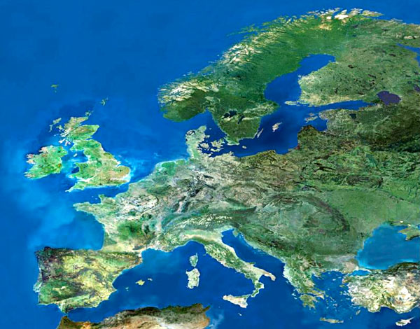 La mayor parte del subcontinente europeo en un mosaico de imágenes captadas por el satélite orbital de observación Envisat de la ESA.