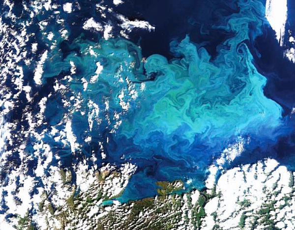 Masa de plancton marino en el Mar de Barents, al Norte de la Rusia europea (Océano Glaciar Ártico).