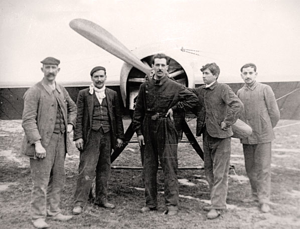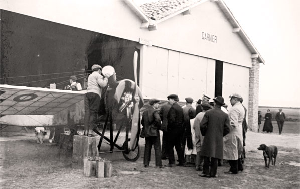 Escuela de Aviación Garnier (él en primer plano) en el Campo de Lacua (Vitoria, 1913).