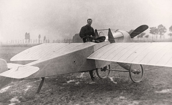 Leonce Garnier con un alumno en un ‘Blèriot’, rodando por el Campo de Lacua hacia 1914. [Fuente: AMV]