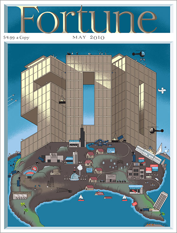 La revista Fortune, uno de los medios de referencia del establishment de los oligarcas y especuladores económicos, publicaba recientemente  su número especial anual sobre las «500 corporaciones más grandes de EEUU». A tal efecto encargaron el diseño de la portada al artista gráfico Chris Ware (Omaha, Nebraska, 1967), ilustrador y dibujante de cómic internacionalmente reconocido que ha obtenido importantes galardones a lo largo de su carrera profesional.
