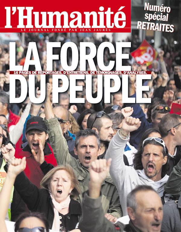 Primera página de l’Humanité, diario de París, del 18 de octubre de 2010.