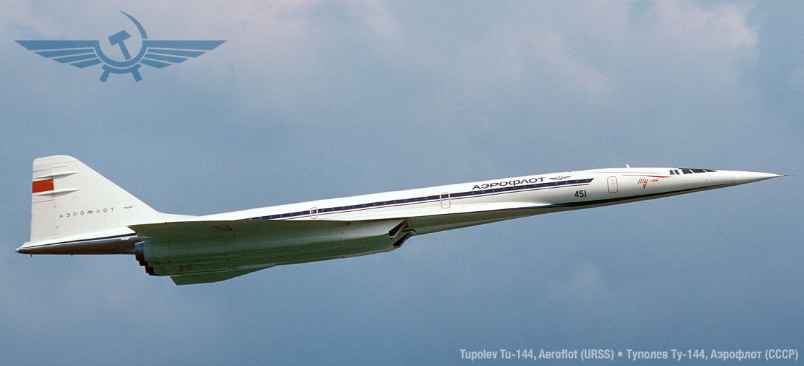 El Túpolev Tu-144 fue el primer aparato comercial supersónico de la historia de la aviación. La fabricación de sus unidades corrió a cargo de la Túpolev OKB (Opytno Konstruktórskoye Biuró, Oficina de Construcción y Diseño Túpolev), que tomó su nombre del laureado ingeniero aeroespacial soviético Andréi N. Túpolev. Aunque fuera denominado de forma bastante anacrónica Concordski por medios occidentales, el Tu-144 realizó su primer vuelo en 1968 desde la base aérea de Zhukovski (región de Moscú) en el año anterior al del primer vuelo de su único competidor —hasta la fecha— en la aviación supersónica de pasajeros, el Concorde franco-británico (también fuera de servicio en la actualidad). Entre los registros históricos del Tu-144 soviético está el haber sido el primer avión comercial que superó la barrera de la velocidad del sonido (Match 1), así como también el primero en duplicarla (Match 2), todo ello en 1969. Sus primeros vuelos comerciales, a cargo de la compañía soviética de bandera —Aeroflot— se efectuaron entre Moscú y Almá Atá (RSS de Kazajistán) en los años 70. El Tu-144 superaba en peso, tamaño, capacidad (140 pasajeros frente a 100) y velocidad (2.500 km/h frente a 2.405 km/h) al Concorde, aunque no así en cuanto a autonomía de vuelo (6.500 km de alcance máximo del avión soviético frente a 7.250 km del franco-británico). Se llegaron a construir 17 unidades operativas del Tu-144, cuyo peso máximo al despegue era de 180 toneladas. Este prodigio de la ingeniería aeroespacial soviética —sin parangón en los tiempos actuales— tenía una logitud de 65,70 m y una envergadura de 28,8 m. Sus enormes alas en forma de delta tenían una superficie de nada menos que 507 m². [Clic en la imagen superior para ampliarla. Foto: Alberto Storti / Airliners.net]