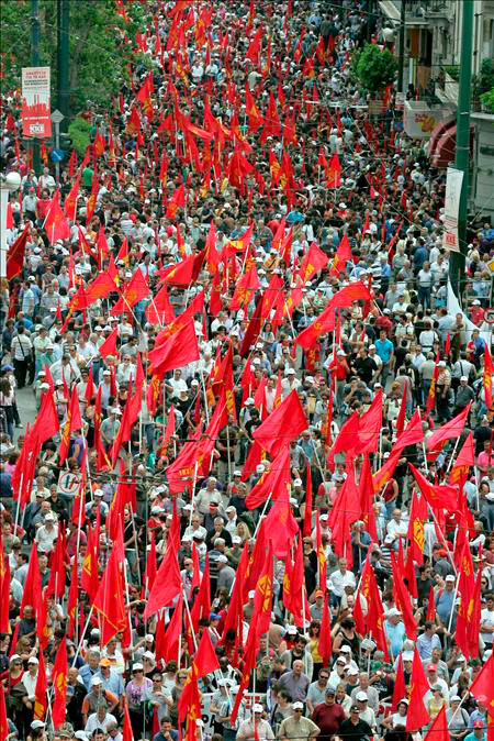 ‘La Francia que sí puede ganar’. Siguiendo la estela de los trabajadores griegos, el 24 de junio millones de franceses tomaron las calles durante una «Jornada nacional de acción» contra los planes de recortes sociales de la UE y el FMI que pretende aplicar el gobierno conservador de Nicolás Sarkozi. La movilización, promovida por el sindicato mayoritario CGT (Confederación General del Trabajo) y otras organizaciones de la izquierda sindical y política, ha tenido como lemas principales la defensa de las pensiones y jubilaciones [retraites en francés] de la clase trabajadora frente a los planes gubernamentales de aumentar la base de años cotizados para alcanzar el 100% de la pensión, así como el rechazo frontal al retraso de la edad de jubilación de los trabajadores franceses desde los 60 años actuales hasta los 62 años. En la vecina España, el gobierno del PSOE (con el apoyo de los grandes empresarios de la patronal CEOE) se propone elevar esta cifra hasta los 67 años y, además, ha congelado las pensiones, ha rebajado los sueldos de los funcionarios y ha abaratado el despido a los empresarios por Decreto-Ley.