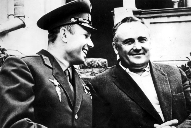 Yuri Gagarin, primer hombre en el espacio, junto a Serguéi Koroliov, el ingeniero jefe del programa espacial soviético.