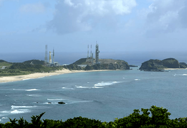Una estampa casi turística del bello entorno de la plataforma de lanzamiento del cohete H-IIB al borde del mar [en el tercio izquierdo de la foto] en las instalaciones del Centro Espacial Tanegashima (TNSC por sus siglas en inglés) de la Agencia espacial japonesa (JAXA). Tanegashima es el principal centro cosmonáutico de Japón y está ubicado en la isla homónima, situada 115 km al sur de Kyushu, la más meridional de las grandes islas de archipiélago nipón. [Foto: JAXA]