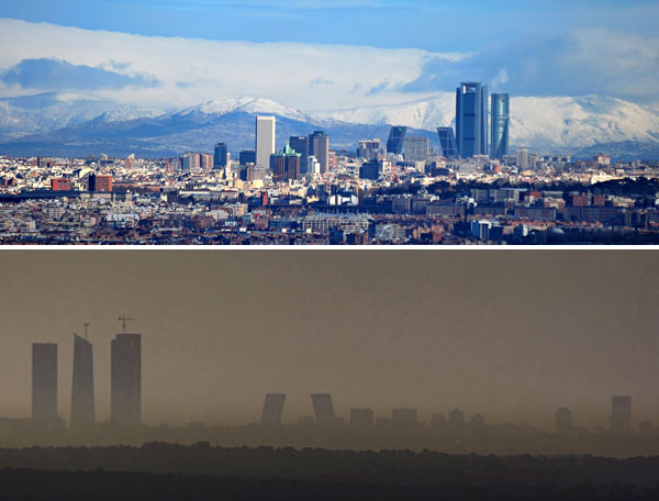 El ‘skyline’ de Madrid y el dióxido de nitrógeno