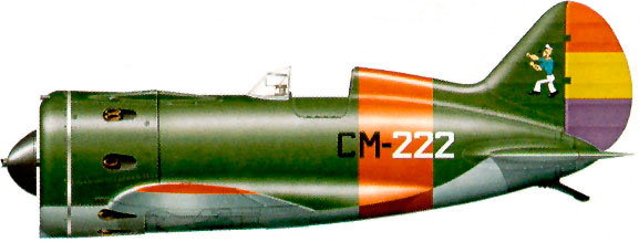 Poliarkov I-16 ‘Mosca’ de la Fuerza Aérea de la República Española. Se trata del primer caza monoplano con tren de aterrizaje retráctil y diseño moderno. Los primeros I-16, de los más de 200 de estos aparatos adquiridos a la URSS, llegaron a España en octubre de 1936 y dotaron a la República de una neta superioridad aérea sobre los rebeldes en los primeros meses de guerra. Éste que mostramos es un caza de la Cuarta Escuadrilla, formada por 12 I-16 y que se distinguía de las demás por el Popeye dibujado en el timón de cola.