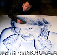 Híperrealismo, sensualidad, seducción, un instante, sorpresa, provocación, toques de trivialidad, cotidianidad, luces y sombras, juventud, papel y… ¡un boli-bic-azul-de-toda-la-vida! Éstos son los ingredientes, el soporte y la herramienta del arte del pintor español Juan Francisco Casas (La Carolina, Jaén, 1976), un arte en el que la pintura y el dibujo se parodian a sí mismos capturando momentos cuyo «modelo» es la fotografía a luz de un flash. Sobre estas líneas, su obra Theitaliandream2 (2010, bolígrafo Bic azul sobre papel).