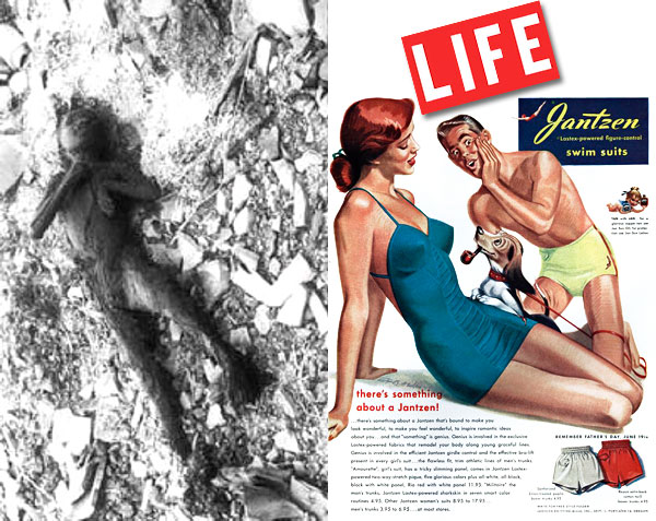 Cuerpo calcinado de un niño a causa de la bomba atómica lanzada por Estados Unidos el 6 de agosto de 1945 sobre Hiroshima y página de publicidad insertada en la famosa revista ‘Life’ («Vida») en 1949, unos veranos después del primer ataque nuclear de la Historia